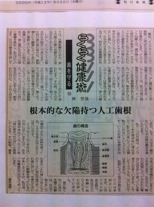 よく、「うちでは失敗したことはありません」のようなことを聞くこともありますが、その患者さんは他院に行っているだけです。林歯科には、そのような患者さんが少なからず訪れています。どうぞ、来なくなっている患者さんの追跡調査をしてみて下さい。
