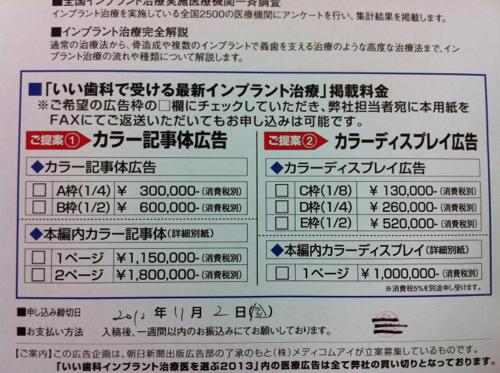 5) インプラント手術の環境が、多くの場合、全身管理を含め劣悪なこと。(血圧も計らずに、抜歯をすることが当たり前のようになっている歯科界は、一般医から見ると冗談の様な世界で、生の顎骨をむき出しにするインプラント手術をオープンスペースで、全身管理もおろそかな状況で行われていては、早晩、インプラント手術は歯科医から医科領域に奪われるでしょう)