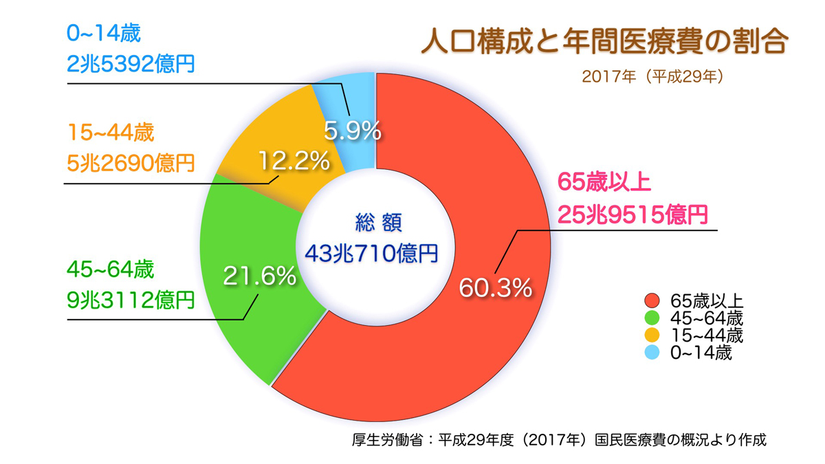 この背景にあるのは、高齢者に使われる社会保障費の増大と、少子化による財源の縮小にほかなりません。2017年の国民医療費は43兆710億円で、そのうち65歳以上の高齢者にかかった医療費は25兆9515億円と全体の60.3%を占めています。平均寿命が延びればそれだけ高齢者人口は増えるので、医療費もその分増加します。【続きを読む】
