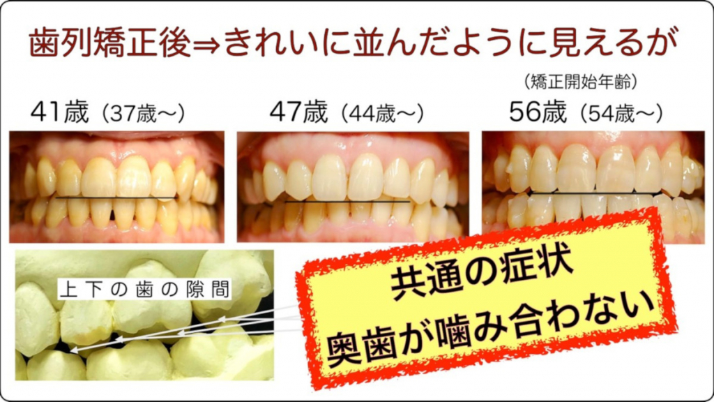 筆者のクリニックに、成人矯正後の不具合を訴える初診の患者さんが来ました。主訴は、「奥歯が当たらず物が噛めない。顎をどこにやったらいいかわからない」といった症状です。歯列矯正という歯科治療を受けた結果として、物が噛めなくなったのです。口の健康に寄与するための歯科医療としては、決してあってはならない出来事です。