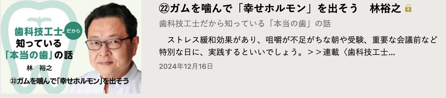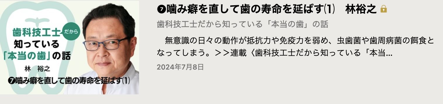 第7回「噛み癖を直して歯の寿命を延ばす⑴ 林裕之