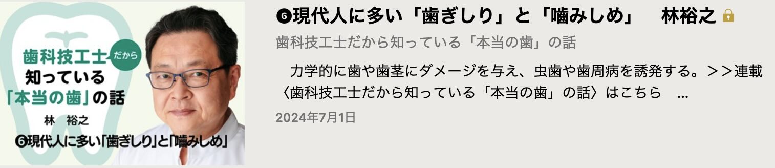 第6回「現代人に多い「歯ぎしり」と「嚙みしめ」 林裕之
