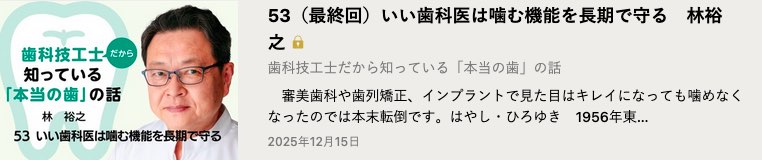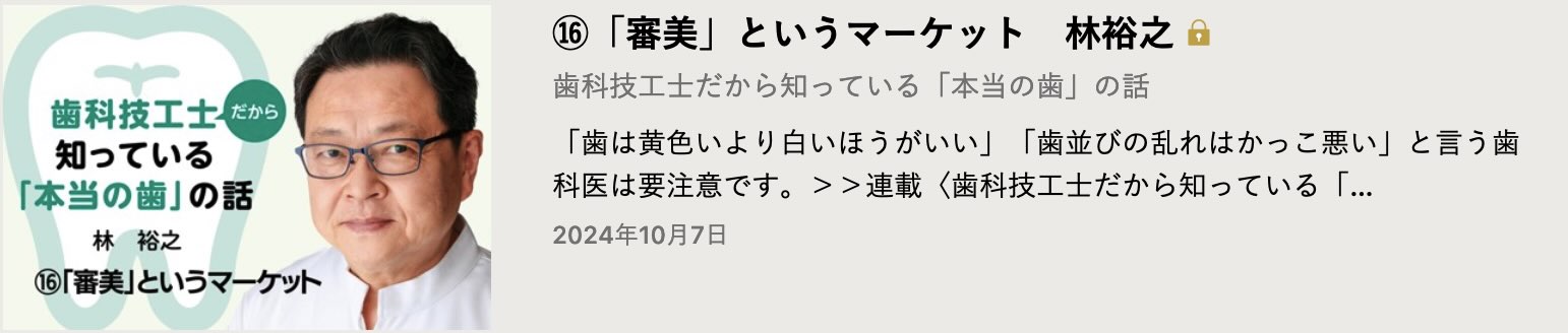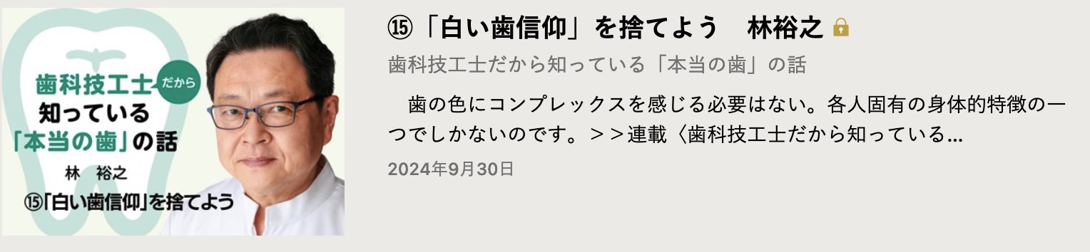 週刊エコノミスト連載「歯科技工士だから知っている「本当の歯」の話」が電子書籍になりました。2024年6月4日号から2025年12月23日号までの全53回をまとめたものです。
