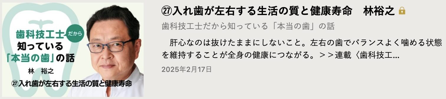 第36回 死亡リスクと入れ歯の良しあし 林裕之