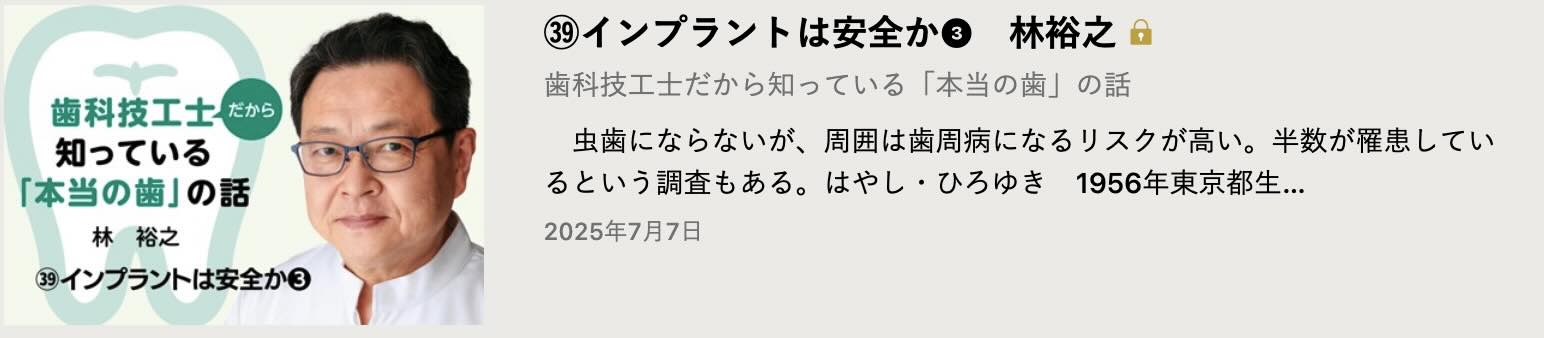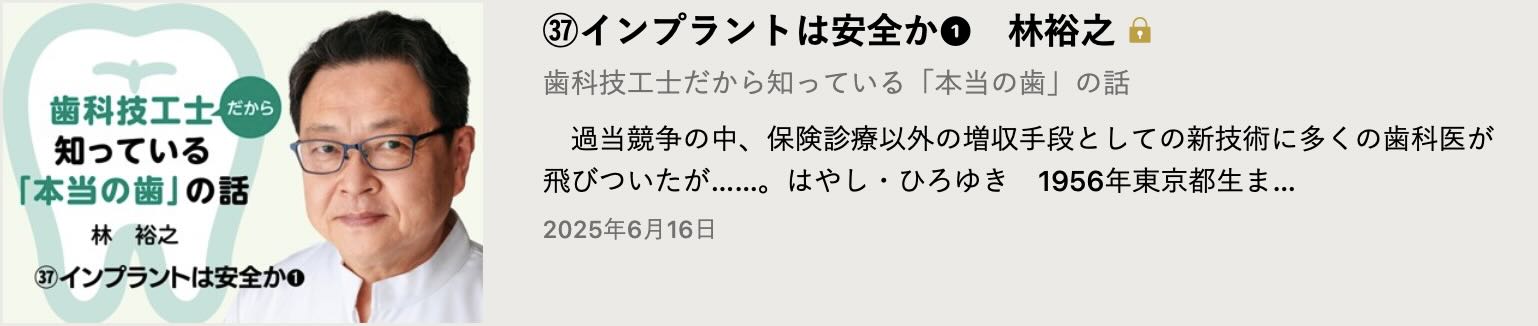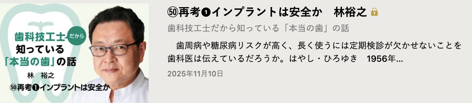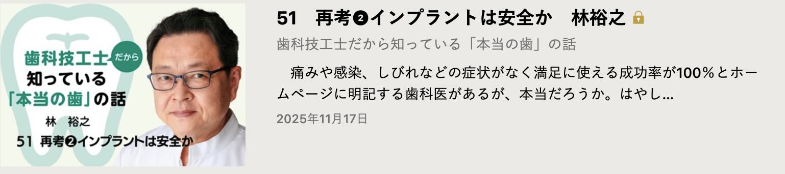 自分の歯のようでも、自分の歯とは別構造であり、そのリスクが歯科医から説明されないケースが少なくない。