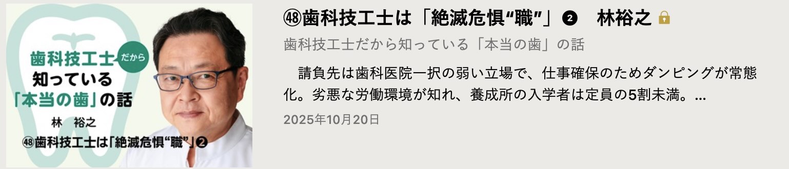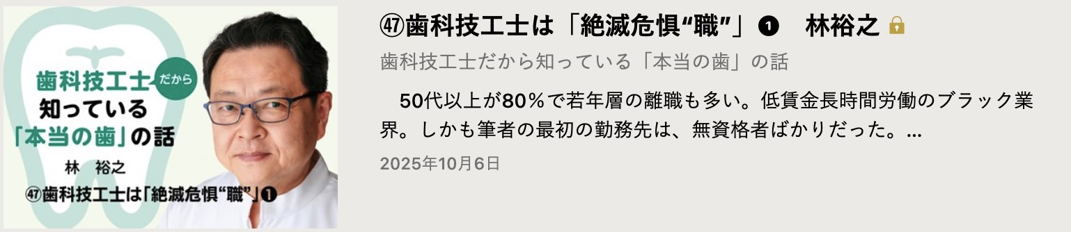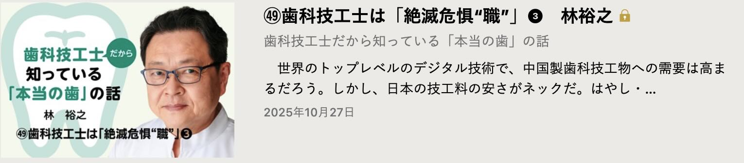 第48回 歯科技工士は「絶滅危惧“職”」❷ 林裕之