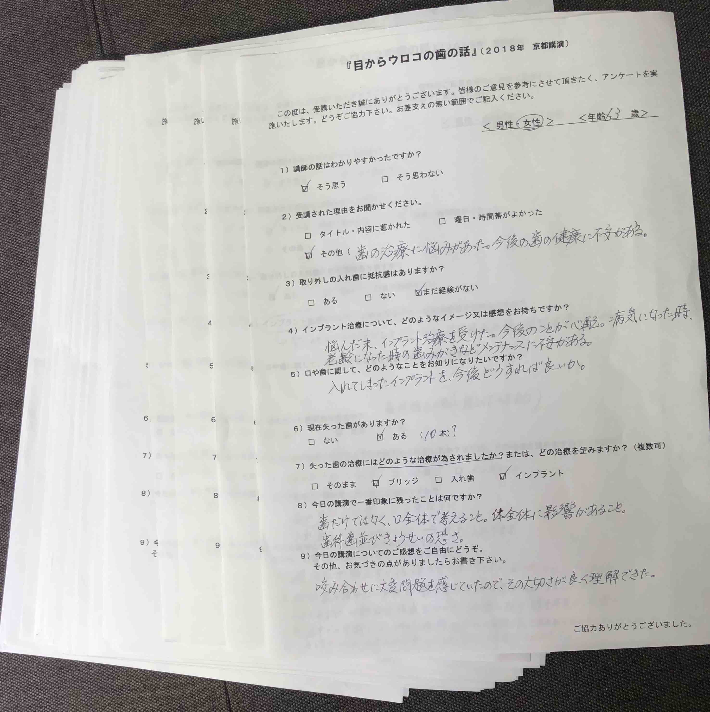 アンケート結果を拝見したところほとんどの方に「良かった」と思って頂けたようです。また中には、「本当に目からウロコの話でした」と書いて下さった方もおられました。